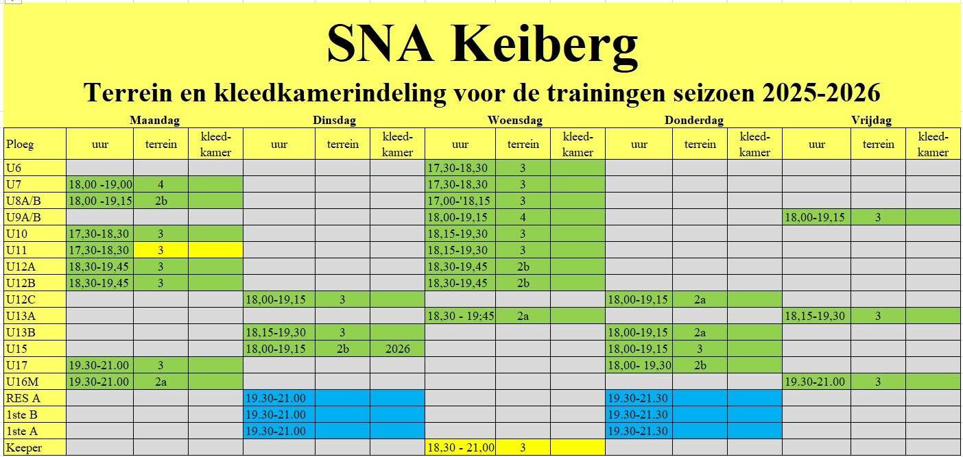 Terrein en kleedkamerindeling voor de trainingen seizoen 2025 - 2026